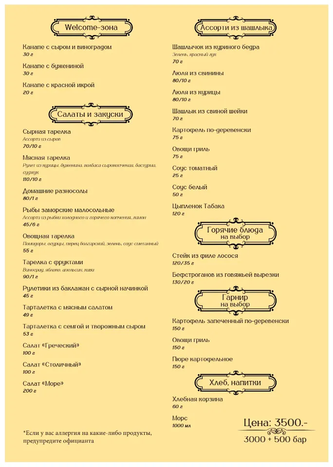 Банкетное меню