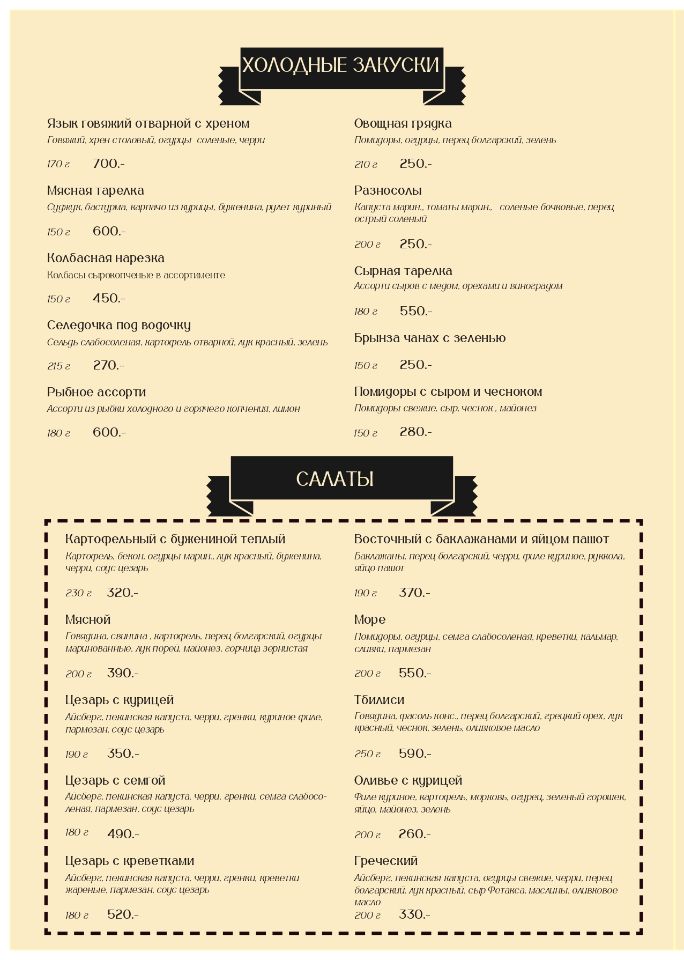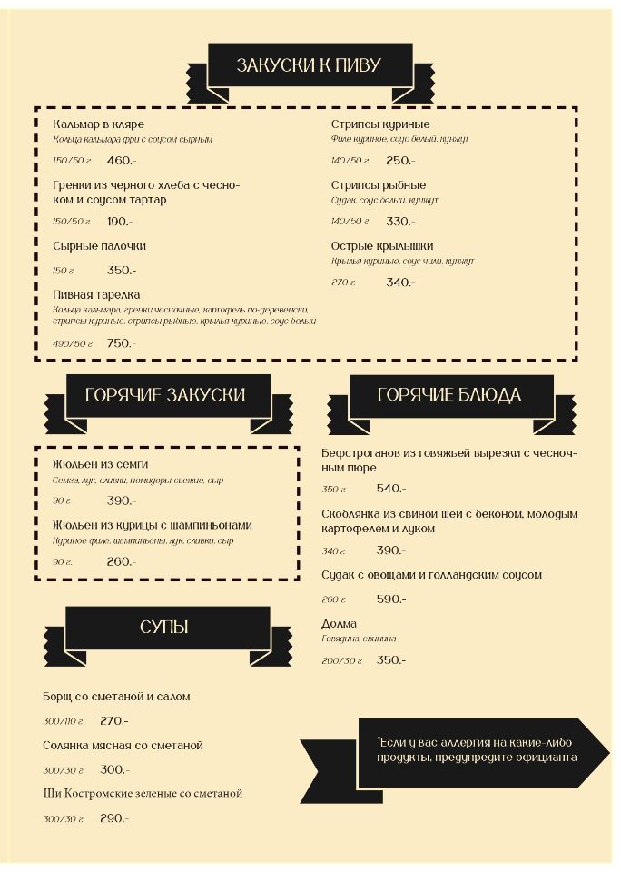 Основное меню